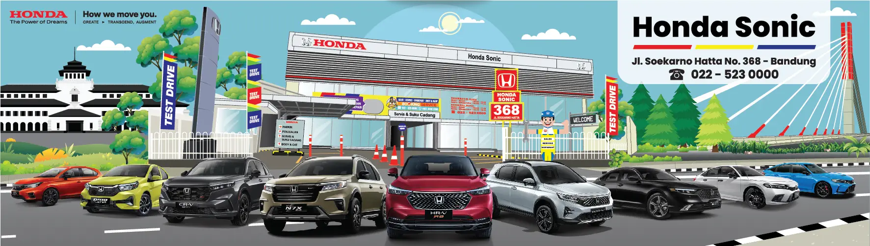 Dengan pengalaman lebih dari 10 tahun, Honda Sonic Bandung, dealer resmi mobil Honda yang berdiri sejak 2014, hadir untuk memberikan layanan penjualan, perawatan, dan suku cadang terbaik. Kami berkomitmen untuk memenuhi setiap kebutuhan kendaraan Honda Anda dengan profesionalisme dan keunggulan, melalui fasilitas 3S (Sales, Service, Sparepart) yang kami sediakan.